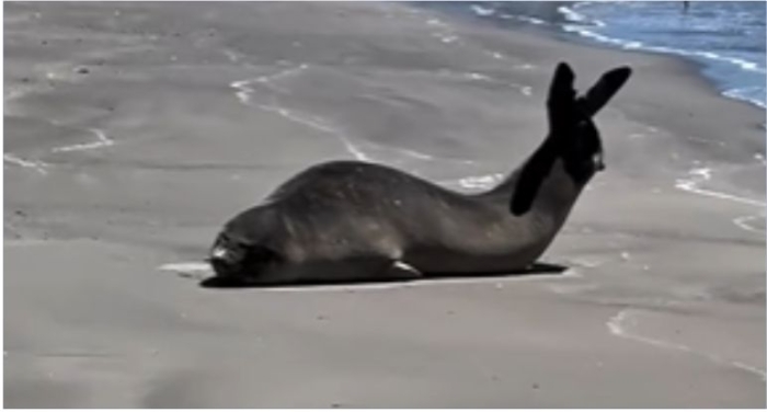 Elefante-marinho na Praia do Mar Grosso - Foto: Reprodução/Redes Sociais Banhistas flagraram um elefante-marinho nesta terça-feira, 04 de março, na orla da Praia do Mar Grosso, em Laguna.