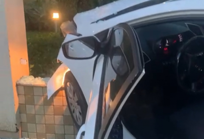 Com o impacto, um dos veículos colidiu em um espaço residencial. Apesar da pancada violenta, os condutores não sofreram ferimentos graves.