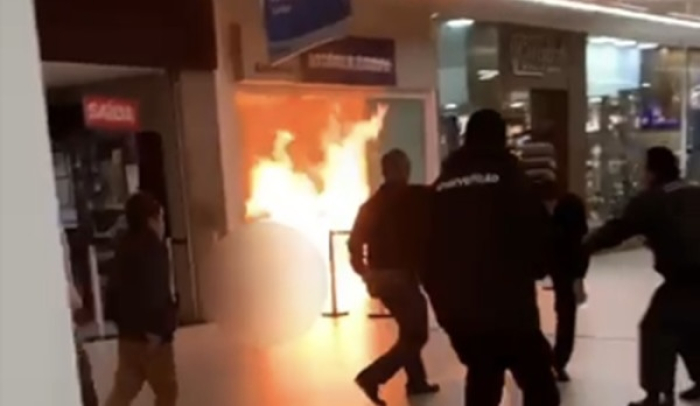 Cinco pessoas ficaram feridas: o agressor sofreu queimaduras de primeiro e segundo grau e está em estado grave, e um segurança do shopping também foi atingido pelas chamas.