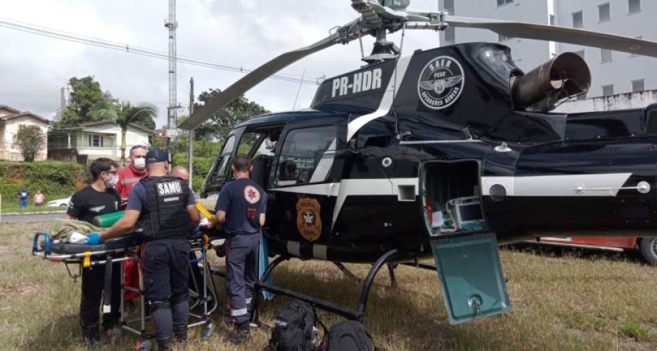 O paciente apresentava fraturas de face com sangramento ativo e também uma contusão importante em região de coluna torácica, após intervenção médica e estabilização do quadro, o paciente seguiu de aeronave até Criciúma para tratamento definitivo.