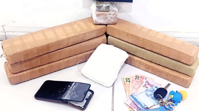 Dentro dela, estavam escondidos 5 quilos de maconha e 500 gramas de cocaína. Um aparelho celular quebrado também foi localizado sobre um dos assentos e acabou recolhido.