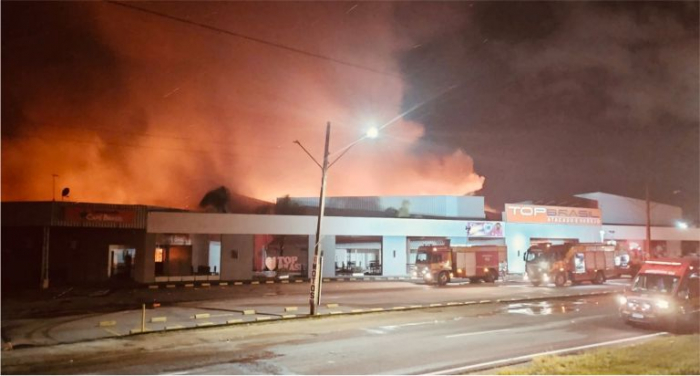 Corpo de Bombeiros atua para conter as chamas em tradicional empresa de Tubarão