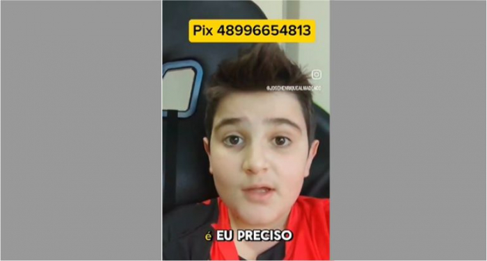 Menino pede ajuda em suas redes sociais - Foto: Reprodução/Instagram Os pais do menino tubaronense José Henrique Rodrigues Romualdo, de 12 anos, promovem uma Vakinha para poder dar sequência ao tratamento do filho. Ele possui uma doença rara, chamada popularmente de “Ossos de Vidro”.