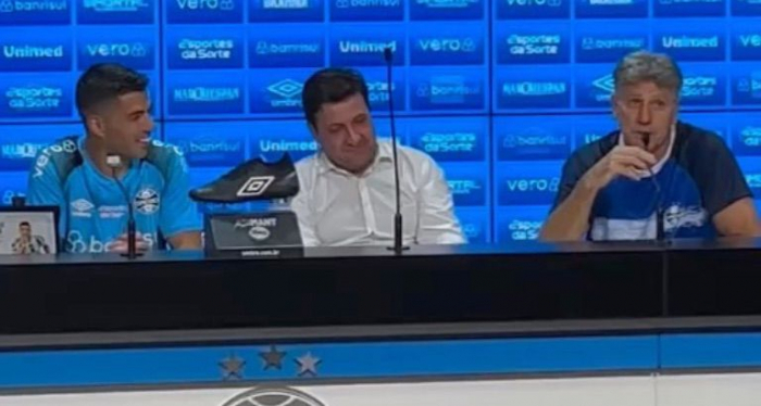 O técnico não perdeu a oportunidade de brincar com o camisa 9 e, durante a entrevista coletiva de despedida do astro, o entregou um DVD com seus lances. Suárez levou completamente na esportiva, riu e deu um abraço em Renato.