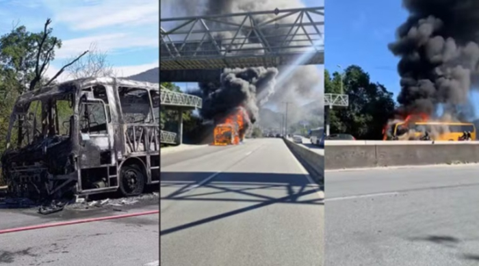 A colisão ocorreu por volta das 9h desta quarta, 09 - Foto: Reprodução Um ônibus pegou fogo e um motociclista de 26 anos morreu após um acidente na SC-401, em Florianópolis, na manhã desta quarta-feira, 08 de outubro.