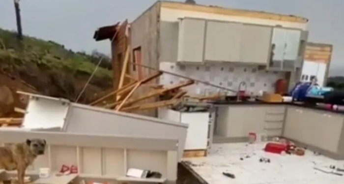 Não há informações sobre feridos - Foto: Reprodução Na manhã deste sábado, 18 de novembro, fortes ventos destruíram as paredes de madeira e telhado de uma casa na cidade de Urupema