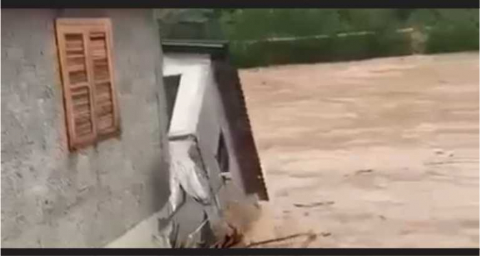 Na localidade de Colinha, um vídeo gravado por moradores, que circula nas redes sociais, mostra o momento em que parte de uma residência é levada pela força das águas do Rio Tubarão.