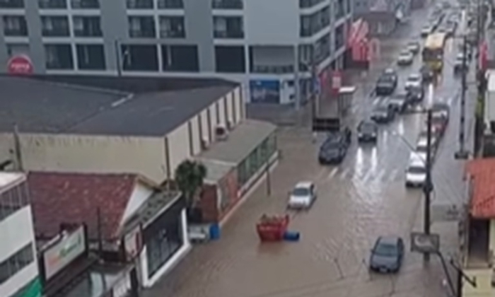 Trânsito exige atenção em uma das principais avenidas de Laguna - Foto: Reprodução Um temporal provocou o alagamento de vias em diversos bairros em Laguna. O Bairro Mar Grosso foi um dos mais afetados e o trânsito ficou prejudicado após as águas tomarem a Avenida Senador Galotti na tarde desta segunda-feira, 12 de janeiro.