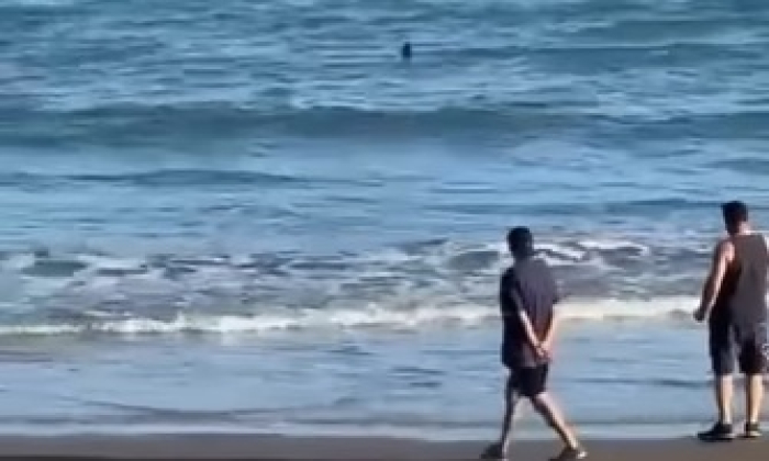 Imagens registraram o momento em que o animal nada bem próximo à beira-mar.